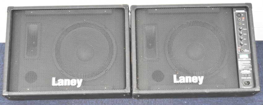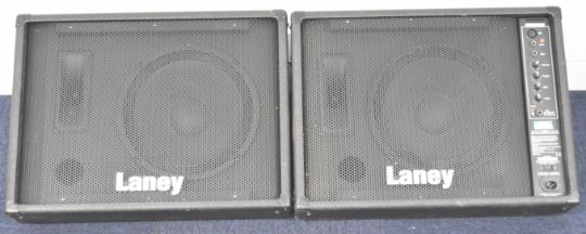 A pair of Laney CP-12 active floor monitor wedge speakers, H37 x D50 x W58cm