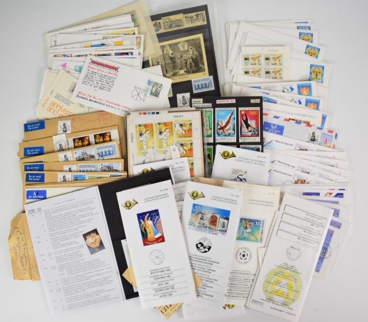 Cyprus stamps and collection packs, first day covers and victory stamps in sheets