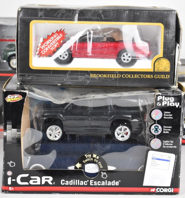Seven 1:18 scale diecast model cars together with a 1:25 scale Chrysler Sebring, to include Minichamps Burago, Corgi Wheelz and Brookfield Collectors Guild.