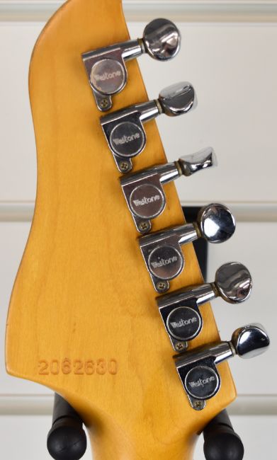 Westone Paduak II electric guitar in natural wood finish with right handed double cutaway, made in Japan, serial number 2062630