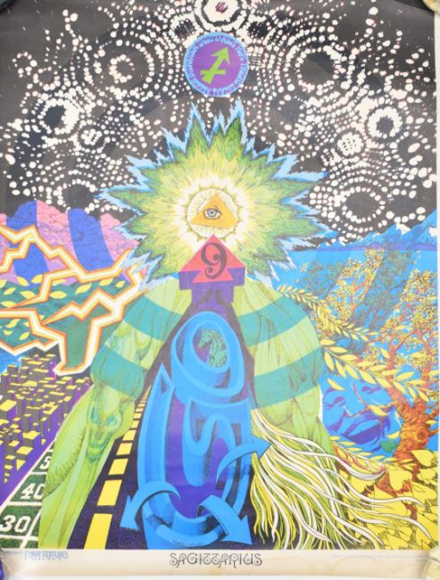 Two 1960s psychedelic / pop art posters Libra and Sagittarius by Funky Features, 75 x 55cm, unframed