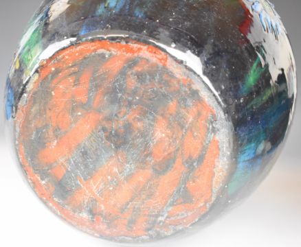 Elton ware pottery jardinière with green and blue drip ware glaze and flower decoration in relief, diameter 26 x height 26cm