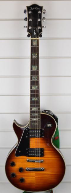 Sheridan left handed Les Paul style electric guitar with EMG-HZ pickups and tobacco sunburst finish