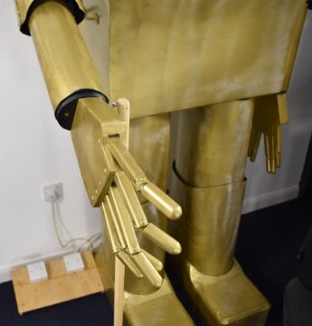 Exhibition size robot based upon the 1939 New York World's Fair exhibit Elektro 'The Moto-Man' which currently resides in the Mansfield Memorial Museum Ohio. Standing over 7ft tall with glowing eyes, light up chest, motorised mouth and audio capabilities and nicknamed Franko by its creator Russell Glen a local craftsman and charity fundraiser. This item can be disassembled for transport and comes with a collection of spare parts. All proceeds of this sale will be donated to charity.