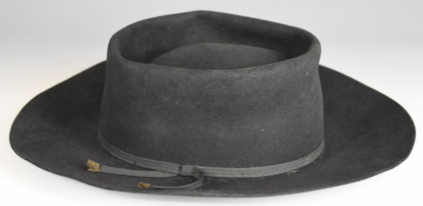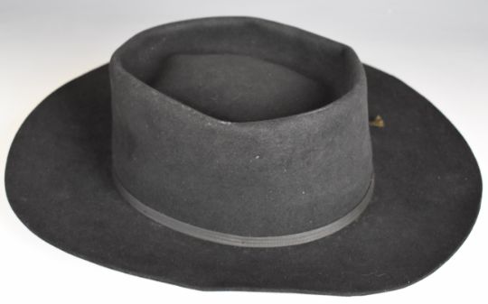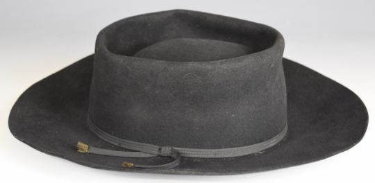 Neil Diamond's wide brimmed hat by Miller's, 123 East 24 St New York. Provenance: Neil Diamond was late for his flight back to the USA, Miranda bet him his hat she could get him to the airport on time. On arrival at the airport (just in time) he started to run off and Miranda shouted "What about the hat?", and he promptly took it off and passed it through the window. From the estate of music journalist Miranda Ward