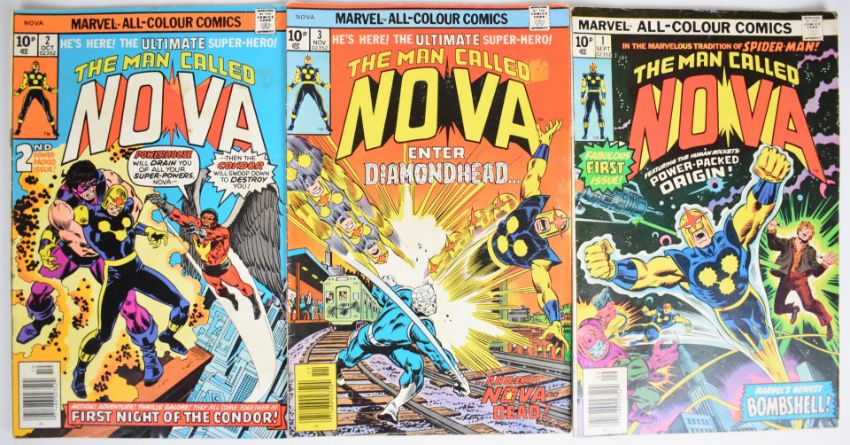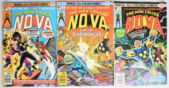 Nova issues #1-3, origin and 1st appearance, key Marvel bronze age comic book, Oct 1976.