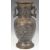Japanese bronze twin handled pedestal vase with applied decoration of birds and flowers, 23.7cm tall.