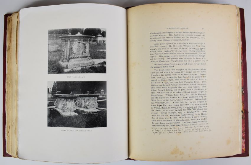 [Local Interest] A Cotteswold Manor being the History of Painswick by Welbore St. Clair Baddeley, published Gloucester John Bellows & Kegan Paul etc 1907 first edition, illustrated with numerous plates and bound in modern half leather with raised bands and gilt spine