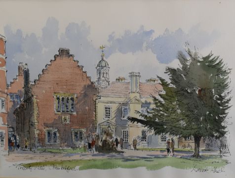Derek Abel (1925-2008) watercolour Trinity Hall, Cambridge, signed and titled to lower edge, 28 x 38cm, in gilt and wood frame