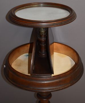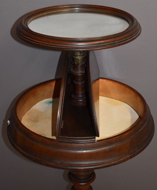 Victorian mahogany shaving / vanity stand with turned support and raised on three carved legs, 127 x 45 x 43cm