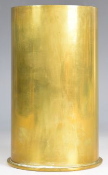 Two brass shell cases one dated 1937, the other 1936 decorated with insignia for the Essex Regiment and brass locker / foot plate for 6010194 Wickings J, both shells 18cm