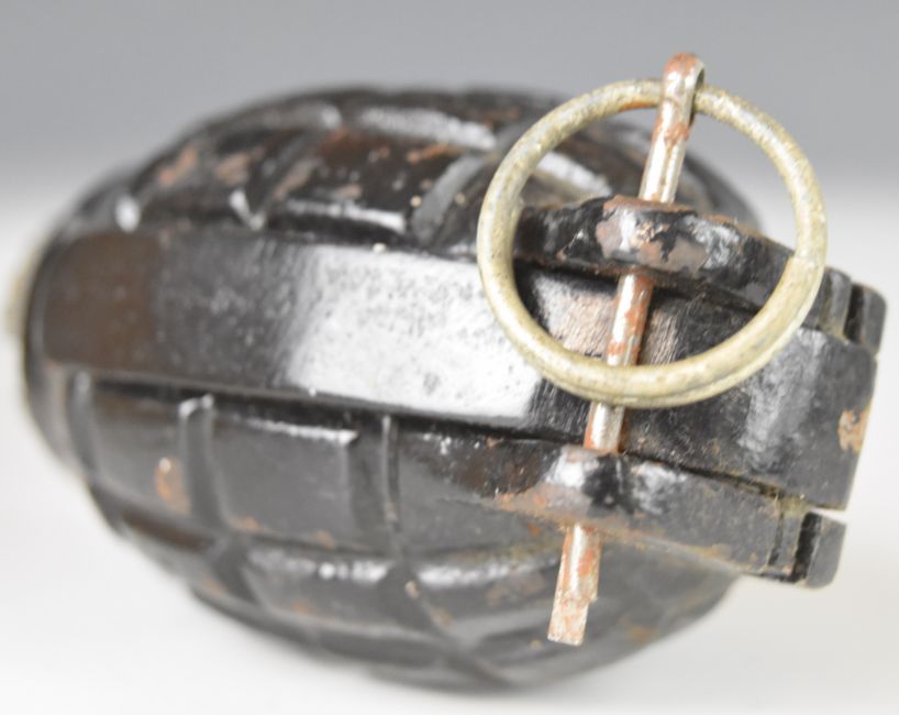 British WW2 inert Mills Bomb hand grenade, No 36 Mk1 and 43 to base