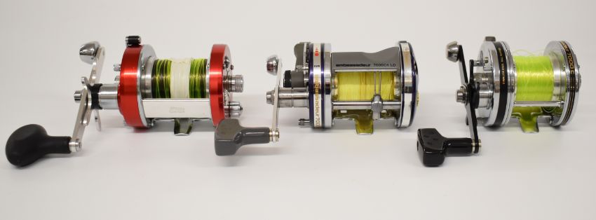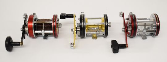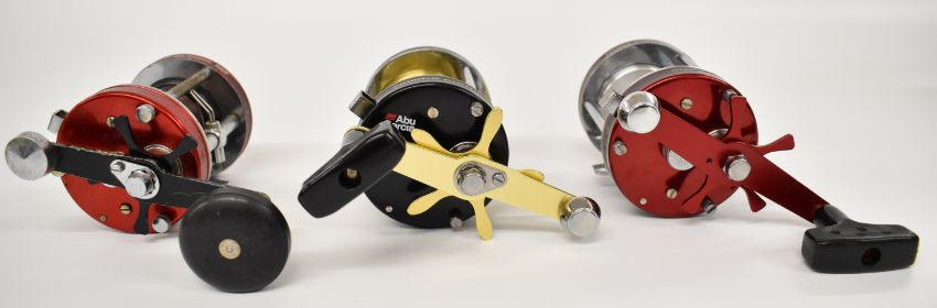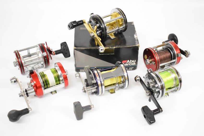 Six Abu Ambassadeur multiplier fishing reels comprising two 7000CL, 7000C4LD, 7000i CT Mag Hi Speed and a boxed 7000CS Pro Rocket, some unused / as new
