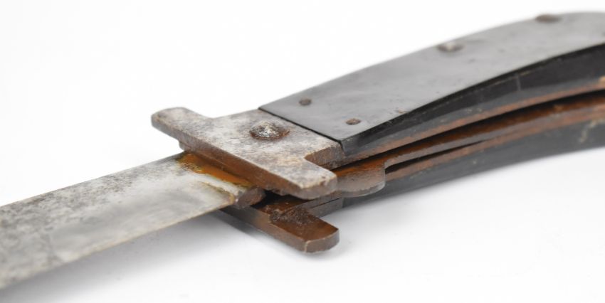 American WW2 era folding survival knife / bolo / machete with 25cm blade, 'Camilus' just legible to blade. PLEASE NOTE ALL BLADED ITEMS ARE SUBJECT TO OVER 18 CHECK ON COLLECTION OR DELIVERY