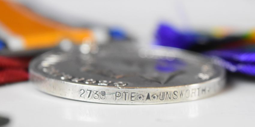 British Army WW1 medal trio comprising 1914/1915 Star, War Medal and Victory Medal named to 2739 Pte A Unsworth, Liverpool Regiment, with copy paperwork
