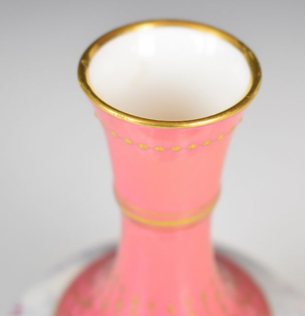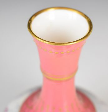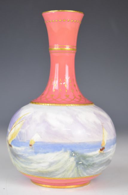 Copeland pedestal vase decorated with sailing boats in a stormy sea, height 16cm