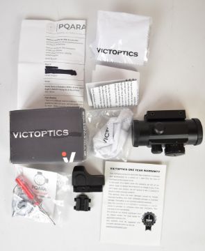 Two Victoptics holographic red dot air rifle or pistol sights including SPX 1x22, both with paperwork and accessories, one in original box.