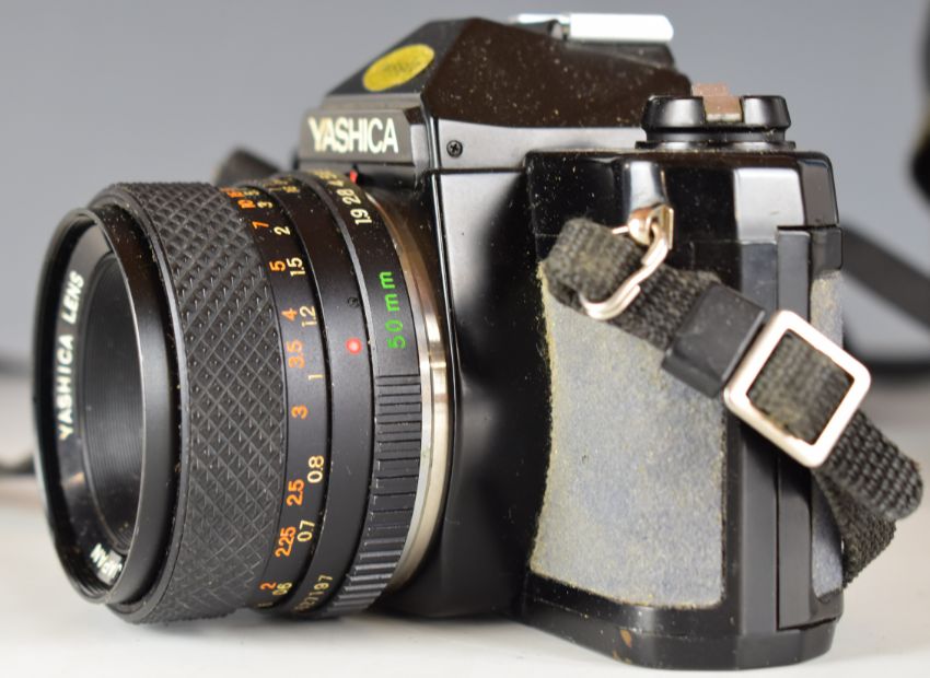 Two Yashica cameras comprising Electro 35 with colour Yashinon DX 1:1.7 f=45mm lens and FX-3 SLR with DSB 50mm 1:1.9 lens