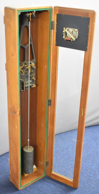Synchronome electric master clock numbered 2063 to movement, with silvered dial to the built in slave clock, overall height 126.5cm