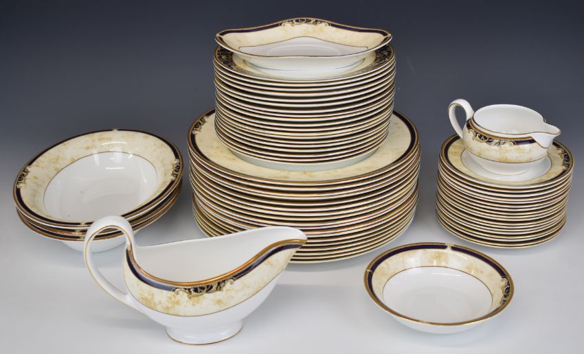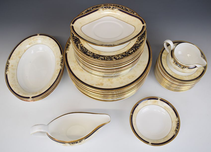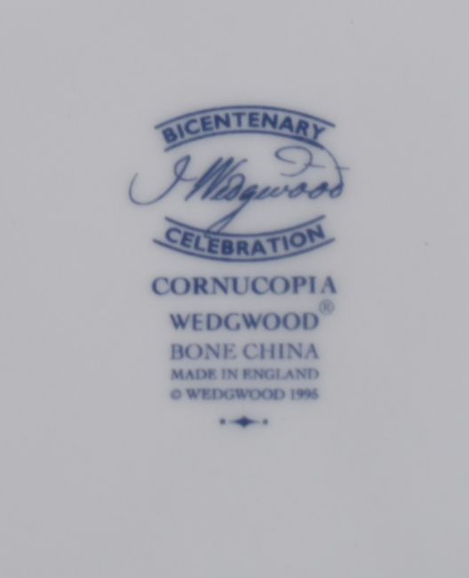 Wedgwood dinner service, comprising eighteen dinner, intermediate and tea plates, three serving dishes, gravy and underplate all decorated in the Cornucopia pattern, approximately 62 pieces