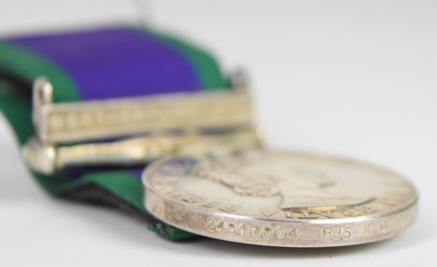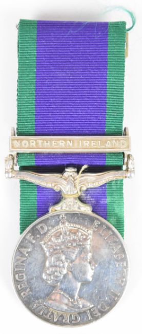 British Army Queen Elizabeth II General Service Medal 1962-2007 with clasp for Northern Ireland named to 24817874 Fusilier S G Turley, Royal Highland Fusiliers