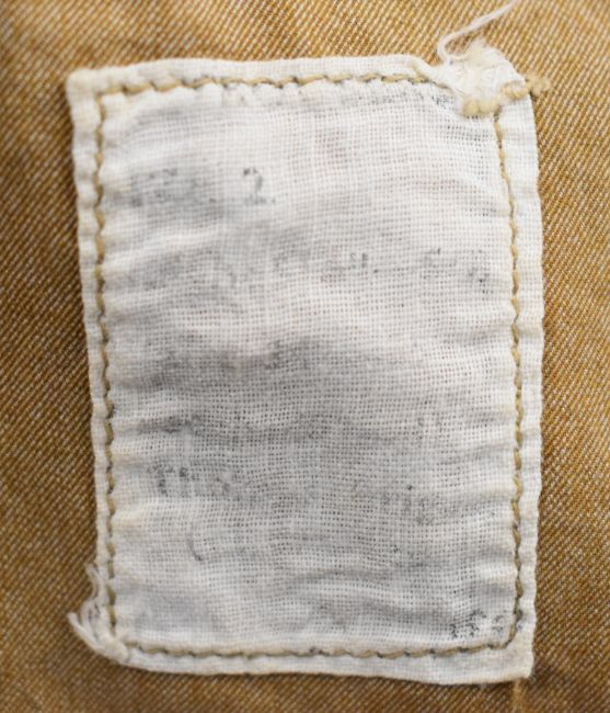 British Army WW2 era drab smock and similar trousers as used by SAS / Long Range Desert Group, labels faded, trousers ink stamped WD37 and broad arrow mark