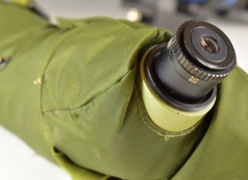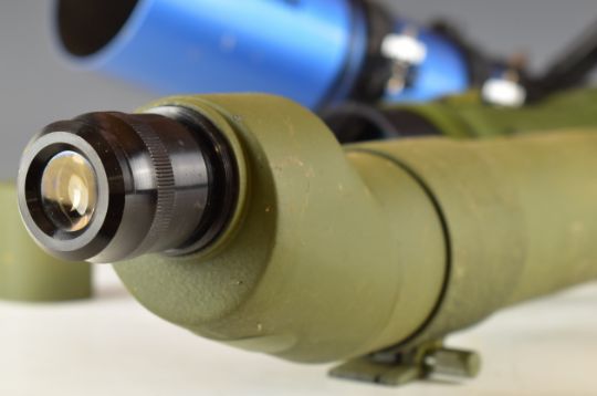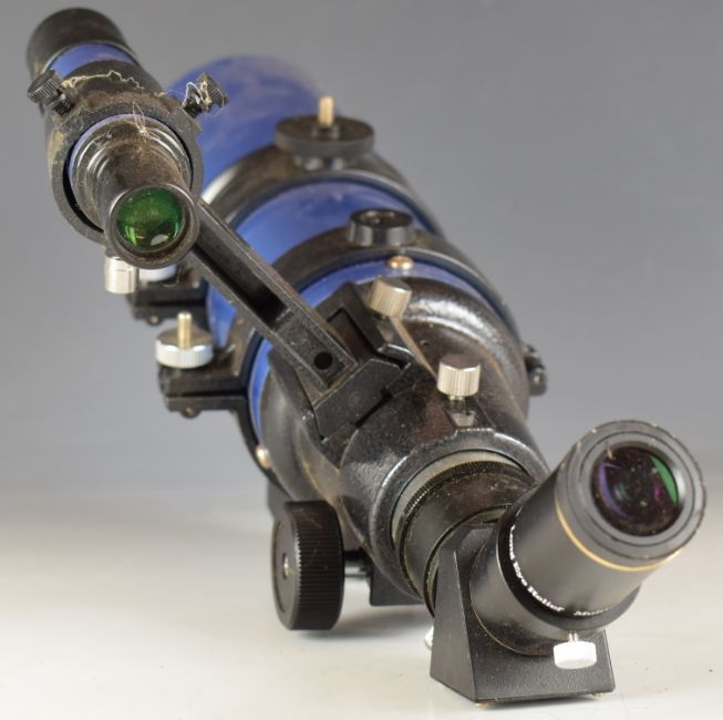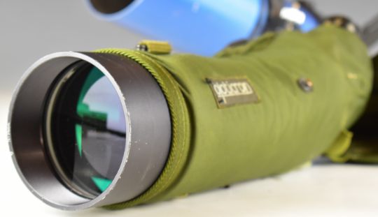Three telescopes and spotting scopes comprising Sky Watcher refractor telescope, Opticron Classic IF Mk II spotting scope and a Greenkat spotting scope