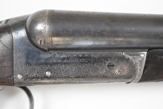 Cogswell & Harrison Ltd 12 bore side by side ejector shotgun with engraved locks, trigger guard underside, top plate, thumb lever and fences, chequered grip and forend, single trigger, vacant cartouche to the underside of the stock and 30 inch barrels choked ¼ and cylinder, overall length 116cm, length of pull 35cm, serial number 23496. PLEASE NOTE THAT A VALID RELEVANT FIREARMS/SHOTGUN CERTIFICATE IS REQUIRED TO HANDLE/PURCHASE THIS ITEM.