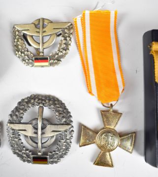 Eight German badges and medals including WW1, WW2 and post war, Pilot's Badge, 25 Years Long Service Medal, Iron Cross etc