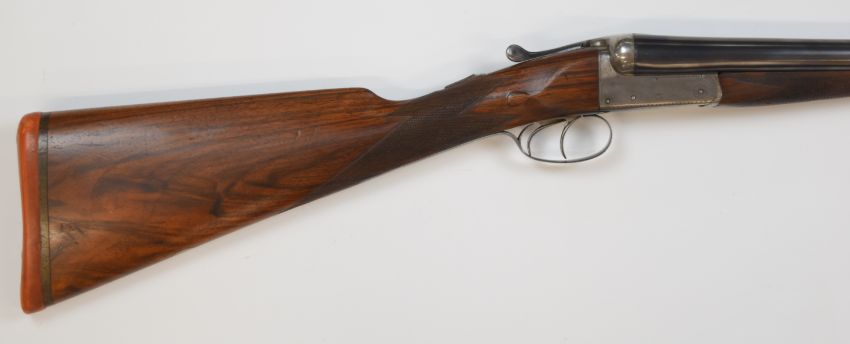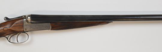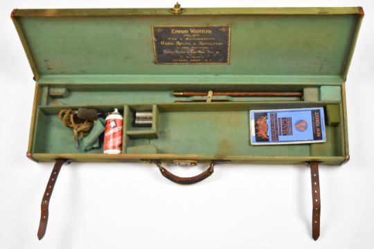 William Powell & Son 12 bore side by side ejector shotgun with border engraved locks, underside, trigger guard, top plate, thumb lever and fences, chequered grip and forend, carved teardrop to the wrist, vacant cartouche to the underside of the stock, double trigger and 28 inch barrels choked improved cylinder and ½, overall length 114.5cm, length of pull 38cm, serial number 15190/ 4649, in canvas and leather bound fitted carry case with 'Edward Whistler New & Secondhand Guns, Rifles & Revolvers of every description. Also Prismatic Glasses by Zeiss, Goerz, Ross, etc 11 Strand Charing Cross WC' label. PLEASE NOTE THAT A VALID RELEVANT FIREARMS/SHOTGUN CERTIFICATE IS REQUIRED TO HANDLE/PURCHASE THIS ITEM.