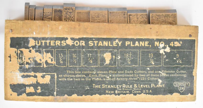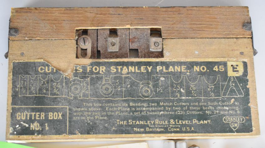 Stanley 45 universal combination woodworking plane parts, with cutters