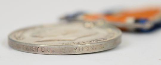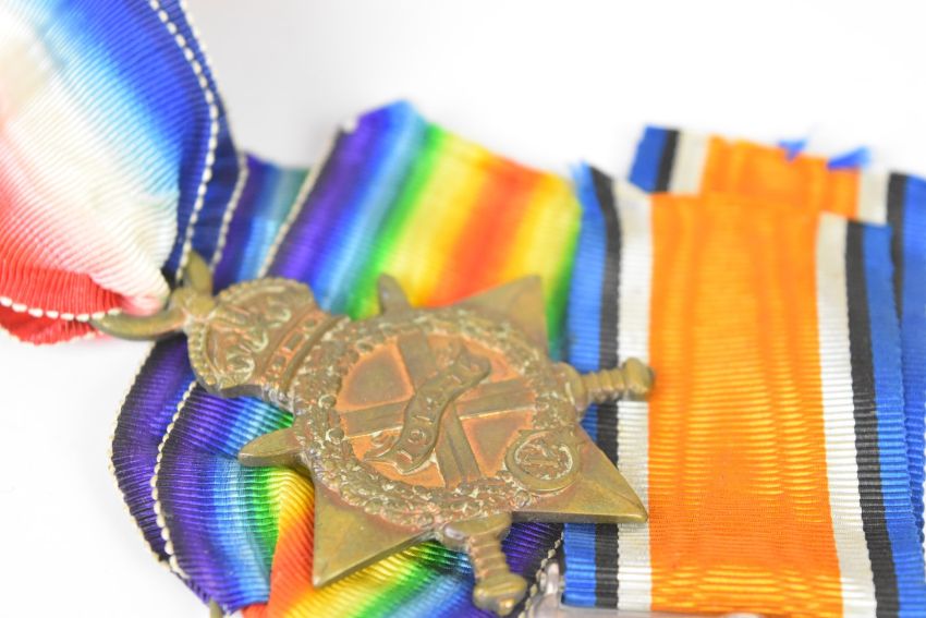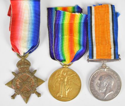 British Army WW1 medal trio comprising 1914/1915 Star, War Medal and Victory Medal named to 11393 Pte W Rushton, East Yorkshire Regiment