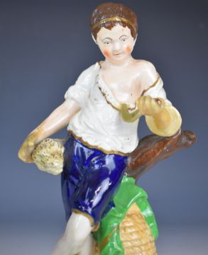 A pair of 19thC figures of a girl with fruit basket and a boy with wheat, probably Russian circa 1920s