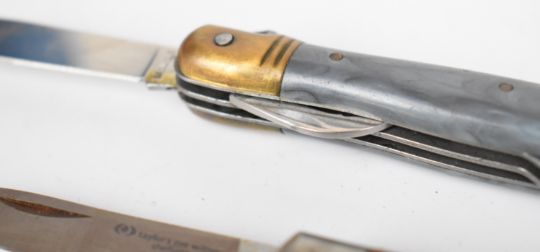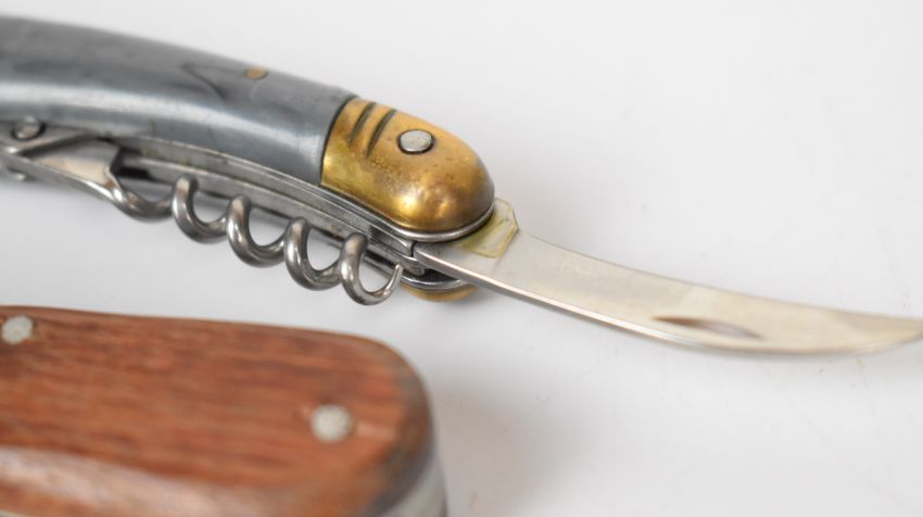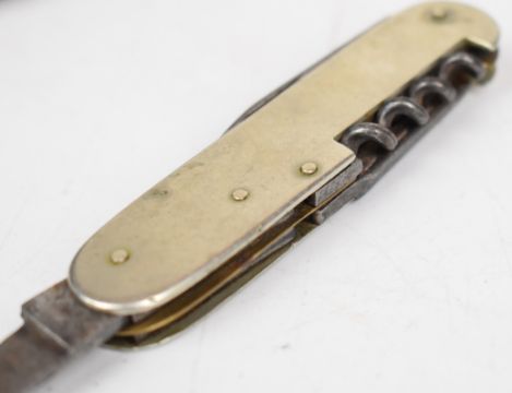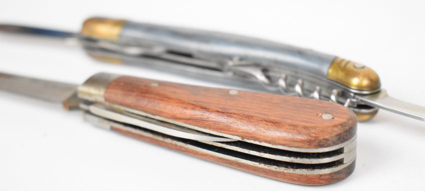 C Butler & Co multi blade pocket knife with six attachments, together with a Taylors Eye Witness pocket knife and further knife with five attachments and Laguiole to blade, longest blade 6cm. PLEASE NOTE ALL BLADED ITEMS ARE SUBJECT TO OVER 18 CHECK ON COLLECTION OR DELIVERY