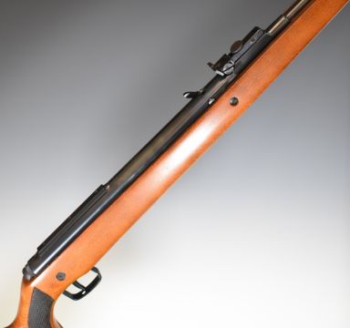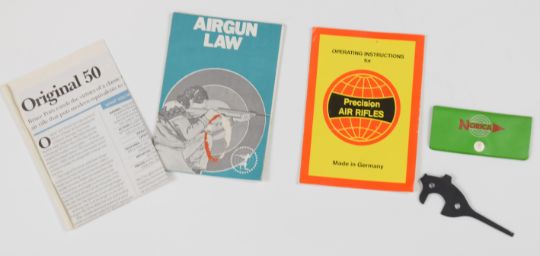 Original Model 50 .22 under-lever air rifle with chequered semi-pistol grip and adjustable trigger and sights, serial number 34051, with original plastic sleeve, sight cover and related paperwork.