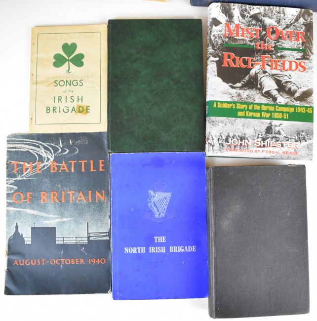 Eleven military books including All Hell On The Irrawaddy and All Quiet On The Irrawaddy, both by John Finnerty, The Regimental Officer's Handbook Of The Japanese Army 1945 War Office Publication, Ballyshannon Belcoo Bertincourt by WJ Canning, signed by author, Call To Arms autobiography by General Sir William Gale, first edition 1968 and signed by author, Unofficial History by Field Marshall Sir William Slim, first edition 1959 and Morning Will Come by Gordon Waterfield, first edition 1944, signed William Slim etc