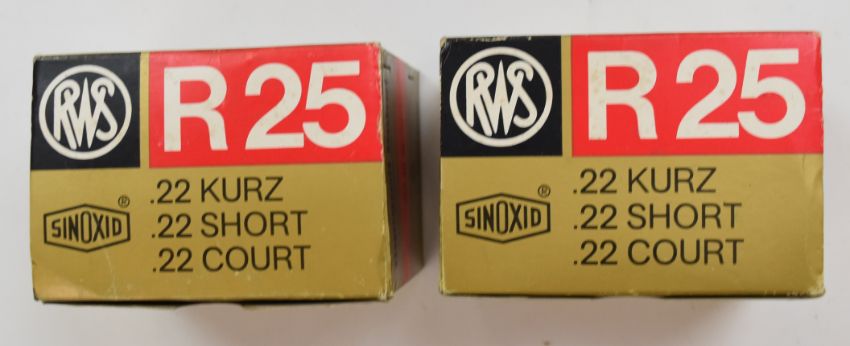 One-thousand .22 Short RWS R25 rifle cartridges, all in original boxes. PLEASE NOTE THAT A VALID RELEVANT FIREARMS/SHOTGUN CERTIFICATE IS REQUIRED TO HANDLE/PURCHASE THIS ITEM. We are not able to offer our usual postage service for this lot