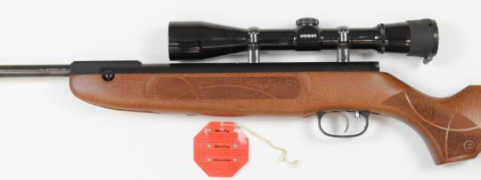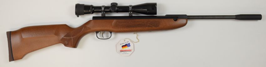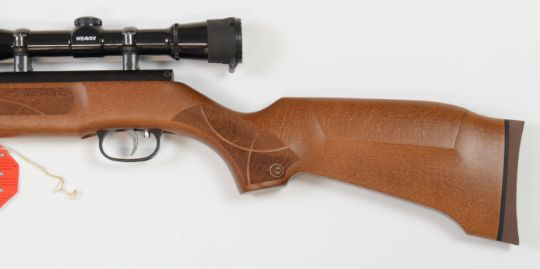 Weihrauch HW30K .22 air rifle with chequered semi-pistol grip and forend, adjustable trigger and Weaver scope, serial number 2379280, with original tag.