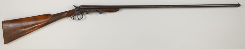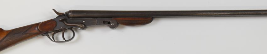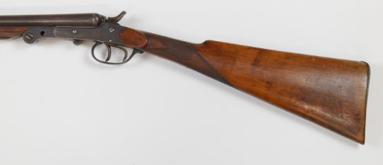 Belgian .410 side by side hammer action folding poacher's shotgun with chequered grip and forend, double trigger and 29.5 inch barrels, overall length 113.5cm, length of pull 36.5cm, serial number NVSN. PLEASE NOTE THAT A VALID RELEVANT FIREARMS/SHOTGUN CERTIFICATE IS REQUIRED TO HANDLE/PURCHASE THIS ITEM.