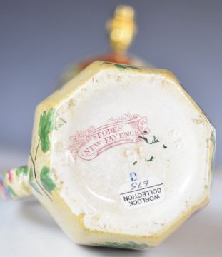 Copeland Spode and Spode 'Fayence' ware including two ribbed vases, lamp and a jug with Worlock collection label to base, tallest 23cm