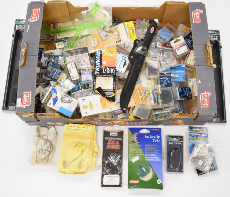 Large quantity of mostly unopened sea fishing tackle/accessories including hooks, traces, lights, floats, terminal tackle etc