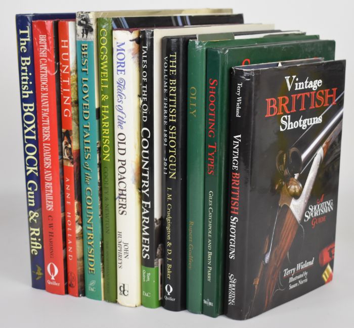 Eleven gun and shooting related books comprising British Cartridge Manufacturers, Loaders & Retailers, The British Shotgun Volume Three 1891-2011, The British Boxlock Gun & Rifle, Hunting, Best Loved Tales of the Countryside, More Tales Of The Old Poachers, Shooting Types, Tales of The Old Country Farmers, Cogswell & Harrison, Vintage British Shotguns and Olly The Life and Times of Frederick Oliver Robinson 2nd Marquis of Ripon.