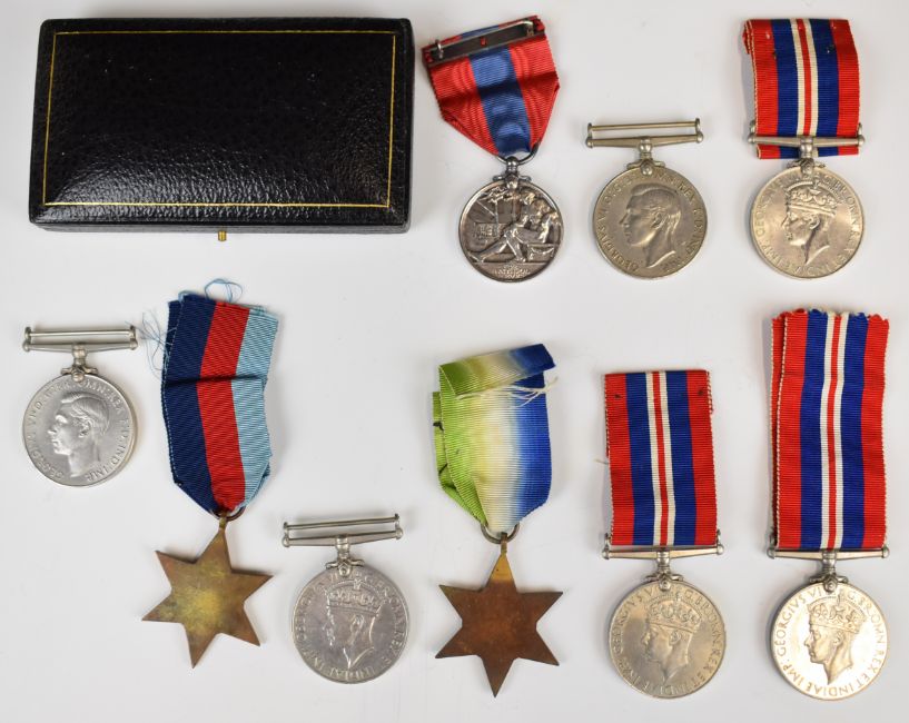 Eight WW2 medals comprising 1939/1945 Star, Atlantic Star with clasp for France & Germany, four War Medals and two Defence Medals, together with a cased Imperial Service Medal to Alfred Ernest Day
