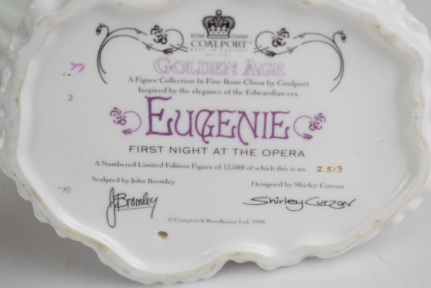 Eight Coalport figurines, five from the Belle Epoque series including two Alice, Helena, Riding in Hyde Park etc, tallest 22cm