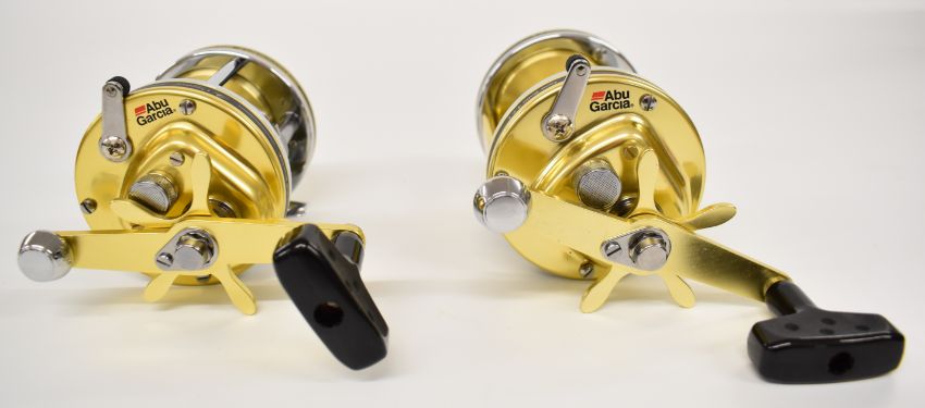 Two Abu Ambassadeur multiplier fishing reels, both boxed with paperwork and accessories, new / unused