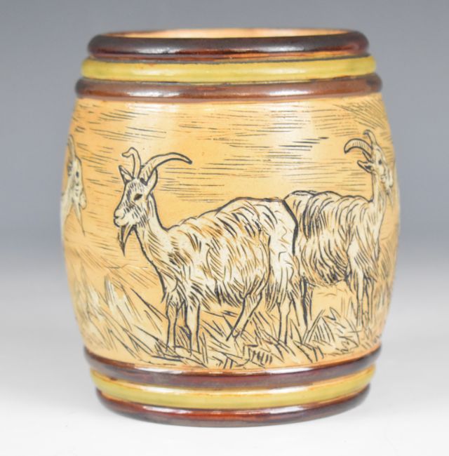 Royal Doulton tobacco jar scraffito decorated with goats by Hannah Barlow, height 11.5cm