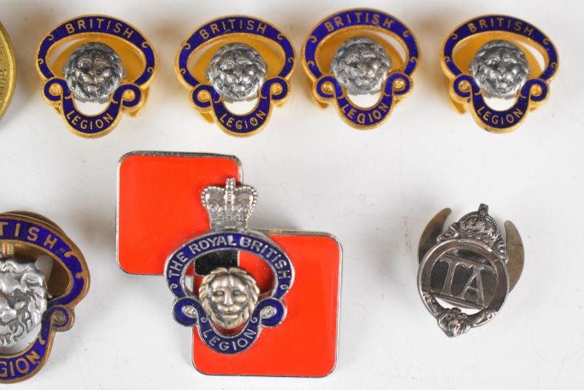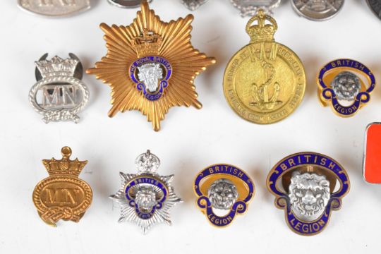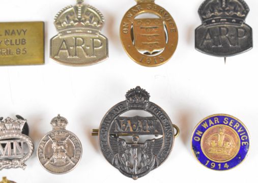Approximately twenty five military related badges including Royal British Legion, Royal Army Reserve, On War Service, NAAFi, Territorial Army and ARP etc