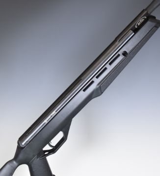 Crosman Fire Model 6-CF2SXS .22 air rifle with skeleton composite stock, textured grip and sound moderated barrel, serial number 222X06511, in original box with instructions.