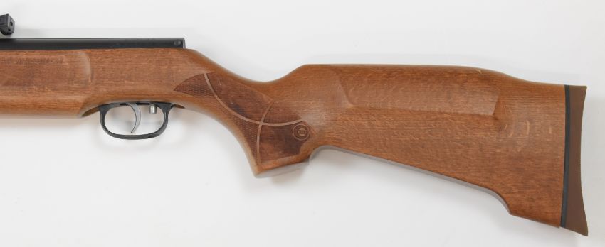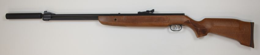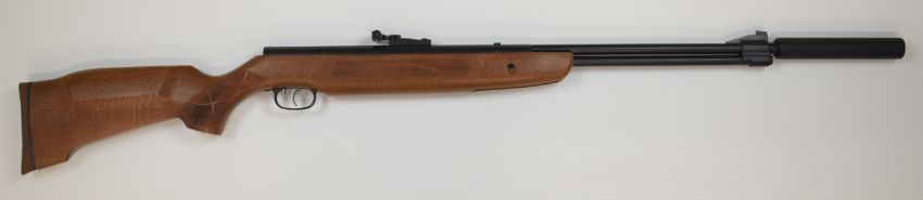 Weihrauch HW57 .22 under-lever air rifle with chequered semi-pistol grip and forend, raised cheek piece, adjustable trigger and sights and sound moderator, NVSN.