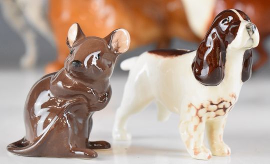 Beswick dog, mouse and large fox figures including St Bernard, Dalmatian, basset, Dachshund etc, tallest 14cm
